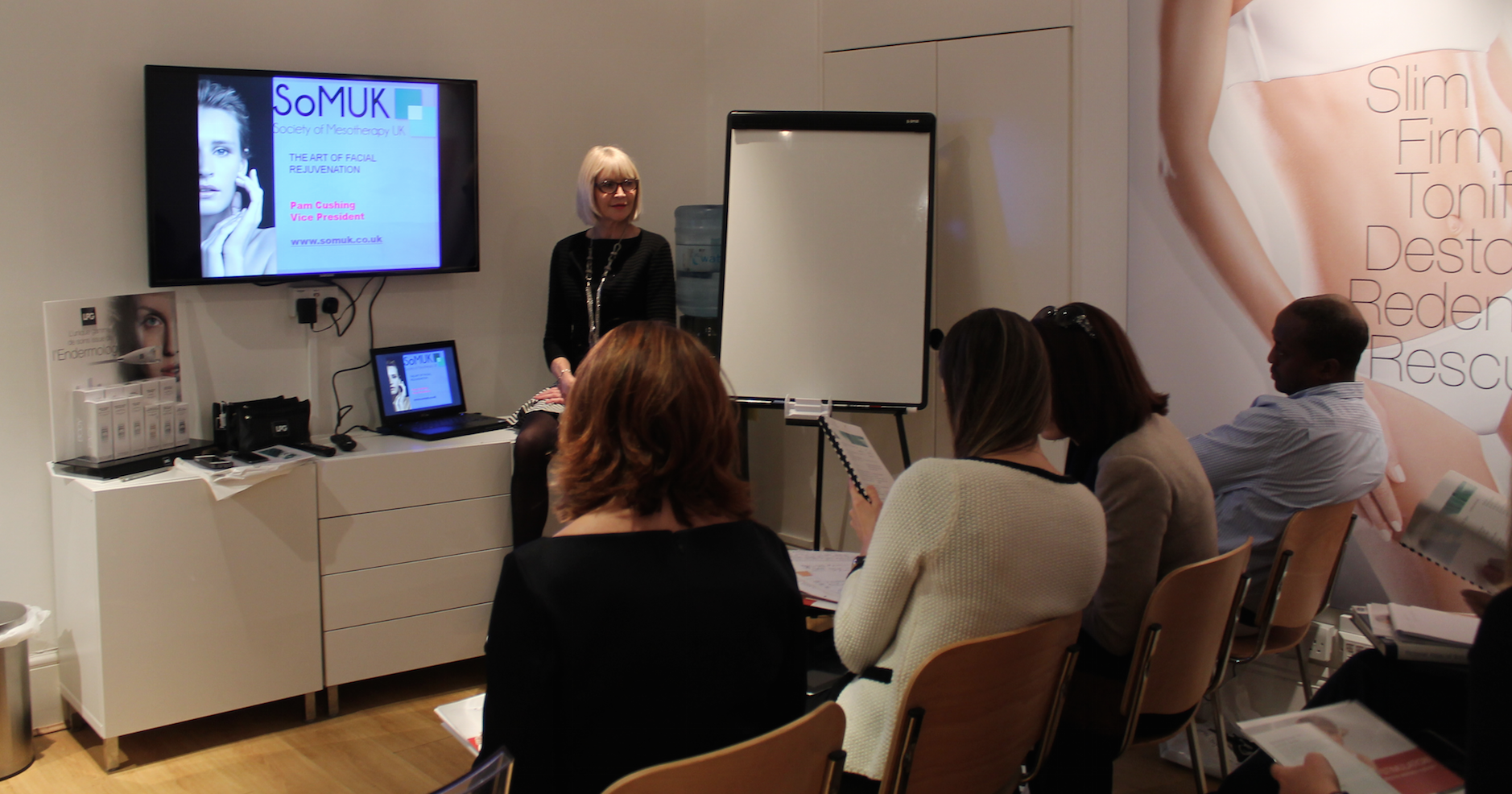 “I came across the Society of Mesotherapy when my PA was doing research as to mesotherapy done on the body for cellulite and other issues. I was already doing mesotherapy on the face and also teaching it’s use to Advanced Beauty Therapists but the body was a mystery to me and I was keen to learn more.